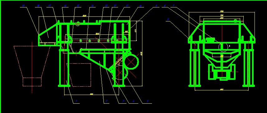 ZG型振动给料机是一种渐趋标准化的通用给料设备,广泛用于相关行业对各种块状及粉状物料的短距离输送。该机能很好地与皮带机等连续输送设备、自动称配及定量包装等系统实现联机和自动化作业,是冶金、矿山、煤炭、建材、化工、电力、及粮食加工等行业选用的较理想的给料和输送设备。它是利用振动电机驱动,使物料沿槽体方向作周期直线往复振动来实现均匀、定量给料。它是由给料槽体、振动电机、减振装置组成。本设计中采用两台振动电机做为激振源,提供振动所需的激振力。为防止振动力过大,破坏地基,采用橡胶弹簧作为减振系统。本设计中采用PLC变频器技术实现振动给料机的交流变频调速。通过选择合适的变频器来使给料机的固有频率与激振频率靠近,以实现双质体共振。本设计整体实现了给料机的结构简单,运行可靠,调节安装方便,重量轻,体积小等特点。