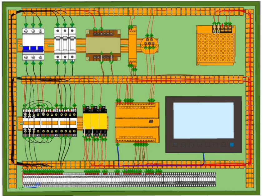Three-Dimensional Wiring for Electric Tool Holder Control Box Abstract: This topic has completed the drawing of the electrical schematic diagram of the main circuit of the elect ric tool holder, the drawing of the PLC control schematic diagram, and the drawing of the wiring diagram of the el ectric tool holder control box.Then the electrical schematic diagram and three-dimensional model of the componen ts of the layout of the UG three-dimensional wiring. Key words: electric tool holder control box;Two-dimensional wiring;three-dimensional wiring