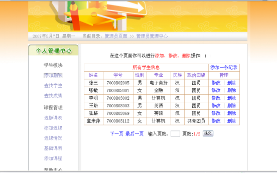 关键字:学生信息管理; B/S;JSP;SQL SERVER 2000;JDBC-ODBC;