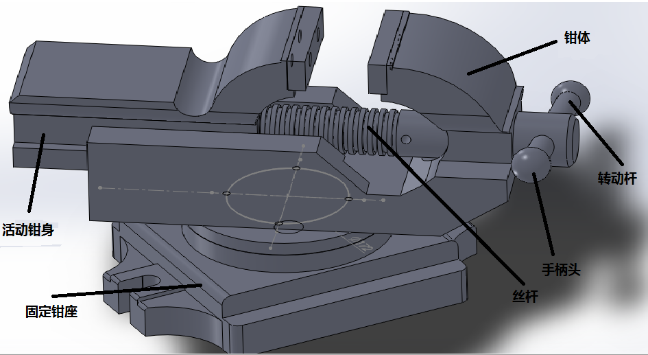 关键词:台虎钳机构;UG;三维造型;装配;运动仿真;